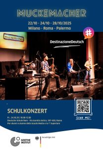 Das Goethe Institut Italien präsentiert: Muckemacher Schulkonzerte in Italien Deutschlernen mit MusikDie Berliner Band Muckemacher geht auf große Konzerttournee nach Mailand, Rom und Palermo.Willkommen sind